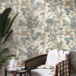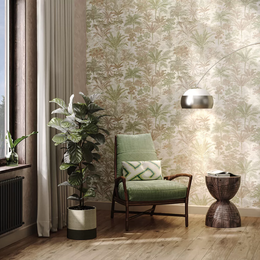 Обои виниловые Оазис мотив, бежевый, зелёный