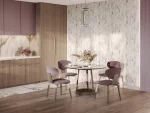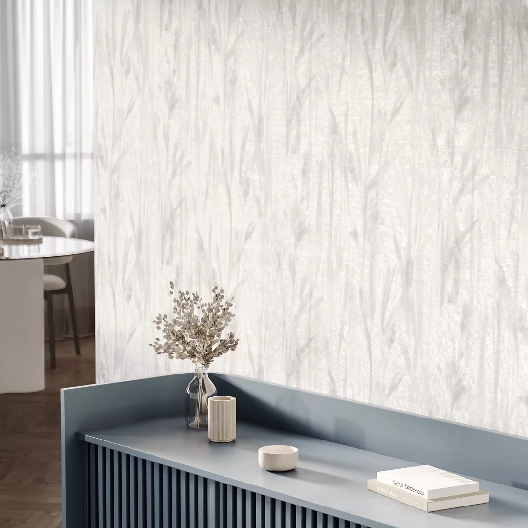 Помимо артикулов со светлым фоном, в серии есть и более насыщенные варианты, в том числе с сиреневыми тонами: они созвучны палитре раннего утра или подёрнутых туманом сумерек. Все обои представлены в матовом исполнении.