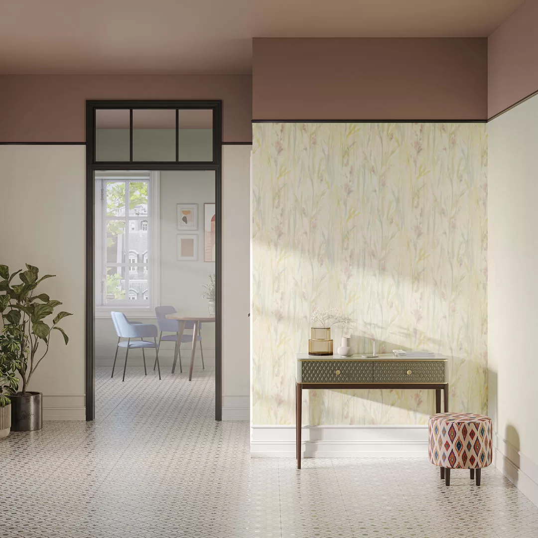 Обои «Отражение» предлагают для стен нежные акварельные тона. Струящаяся тягучесть рисунка и мягкие контуры, напоминающие работы ранних импрессионистов, придают графике этой серии особое настроение.