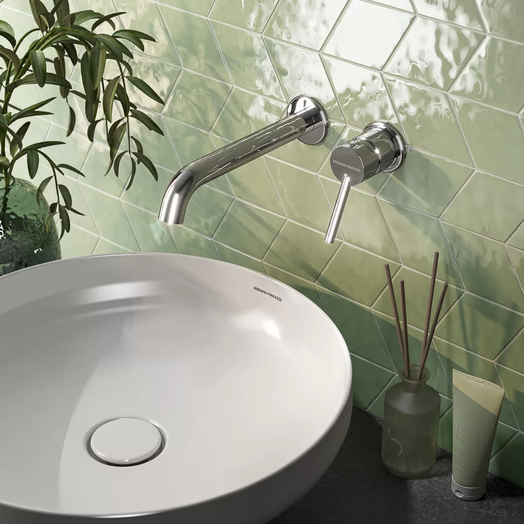 Аутентичность глянцевых декоров подчеркивают насыщенные оттенки: красный, синий, зелёный, жёлтый — словно палитра марокканских улиц. Лёгкая структура камня добавляет выразительности, а нейтральные тона позволяют использовать плитку-ромб не только на акцентных стенах, но и в сдержанных интерьерах.
