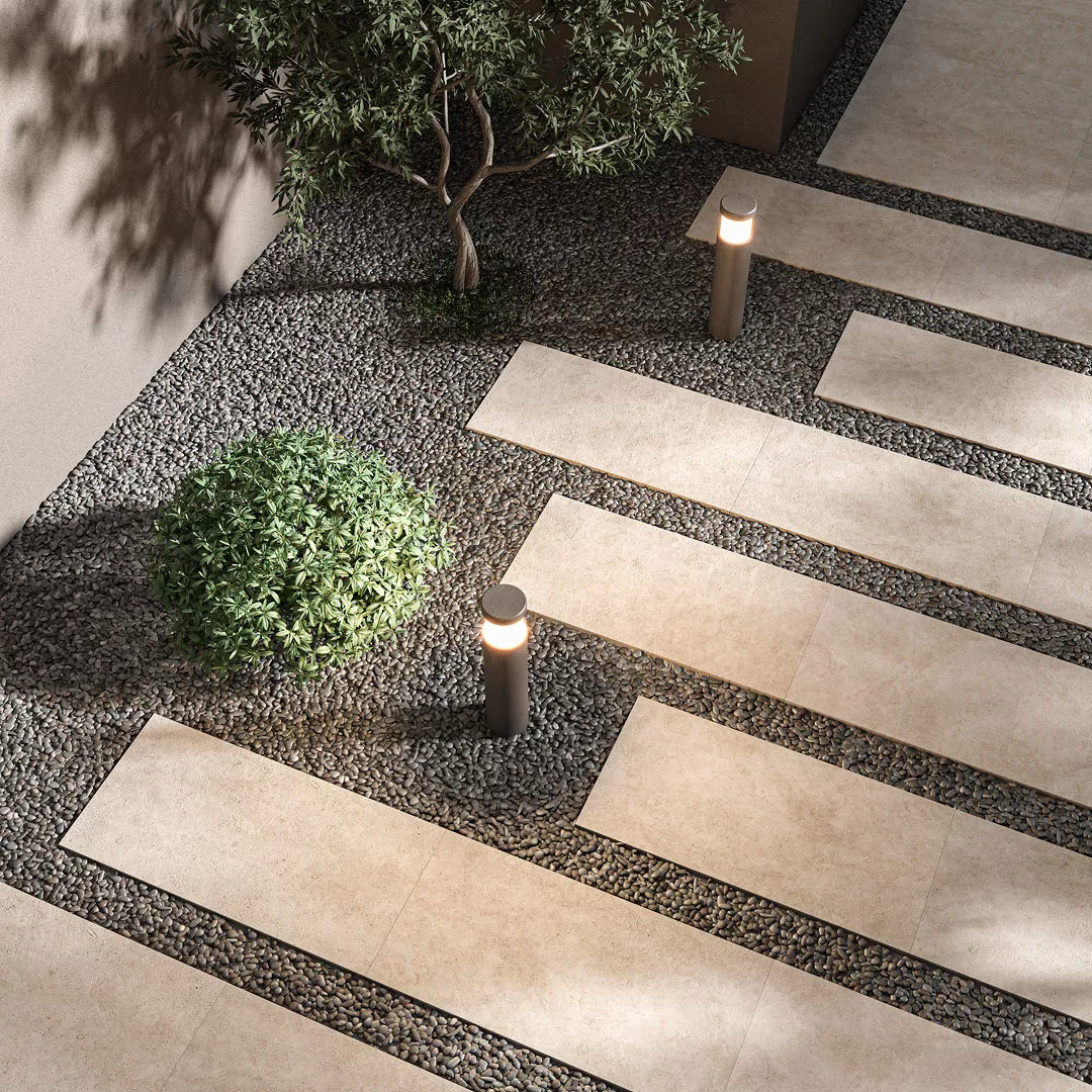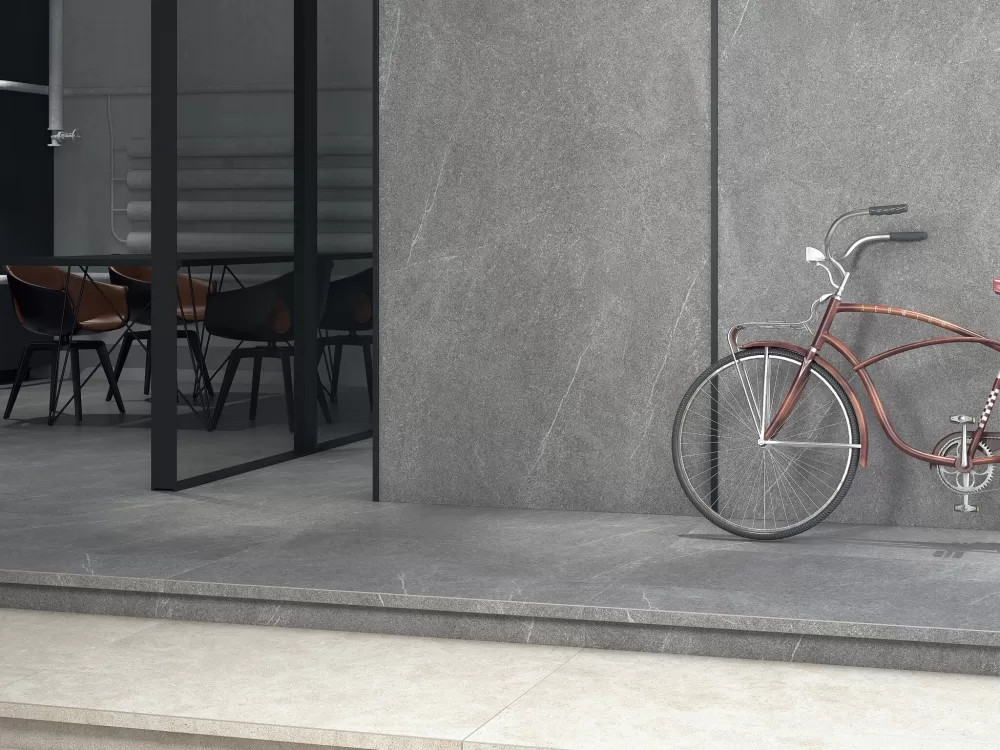 Также в серии представлен керамогранит толщиной 20 мм с реалистичным рисунком природного камня. Два универсальных цвета, бежевый и серый, подойдут для широкого спектра решений: от ландшафтного дизайна и систем поднятого пола до отделки производственных помещений, где критичны повышенные прочность и износостойкость.