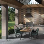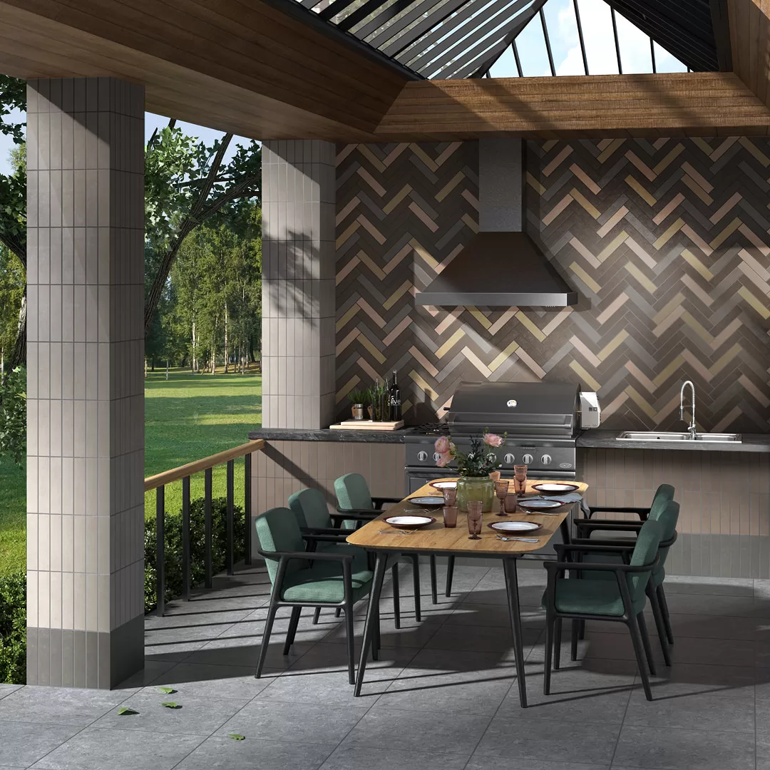 Серия «Роверелла» предлагает несколько популярных форматов керамического камня: от крупных плит для укладки на большие поверхности (119,5×238,5, 60×119,5) до мозаики, с помощью которой можно создавать эффектные бордюры. Применимость серии расширяют керамические ступени, которые сделают дачную лестницу или крыльцо надёжными и эстетичными.