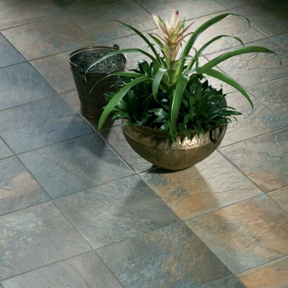 Структурированный керамический гранит внешне очень похож на одноименную горную породу вулканического происхождения. Рисунок на плитке, нанесенный методом цифровой печати, достоверно имитирует слоистость природного материала. Цветовой спектр натуральных сланцев велик: серые, желтые, красноватые, коричневые, зеленые, черные. Керамический гранит серии «Сланец» представлен в двух вариантах – беж с ярко выраженной жёлтой слоистостью и тёмно-серый. Мозаичные декоры, выполненные из базовой плитки, могут использоваться не только как украшение, но и для самостоятельной укладки.