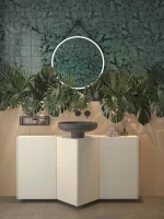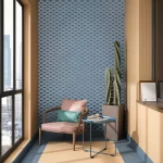 В обстановке вместе с матовой настенной плиткой «Таделакт» можно использовать керамогранит «Про Чементо», создавая гармоничные интерьеры в эстетике бетона.