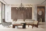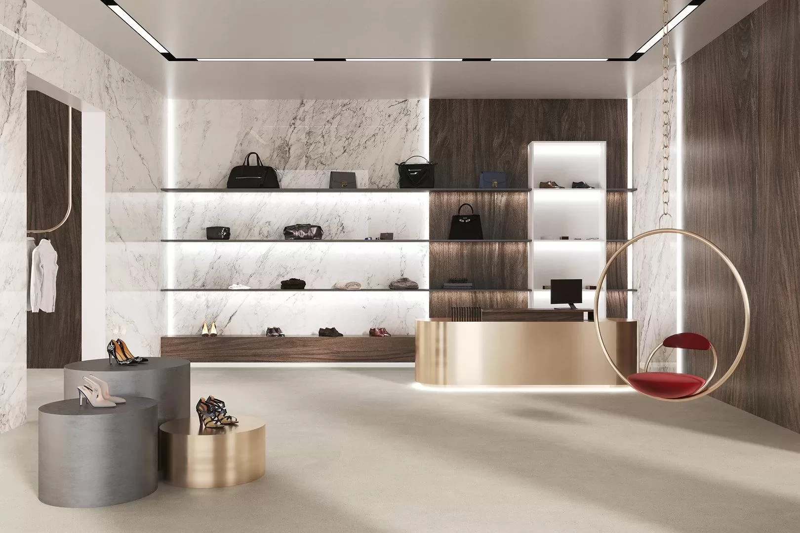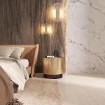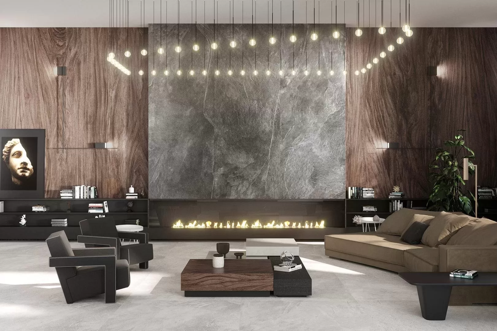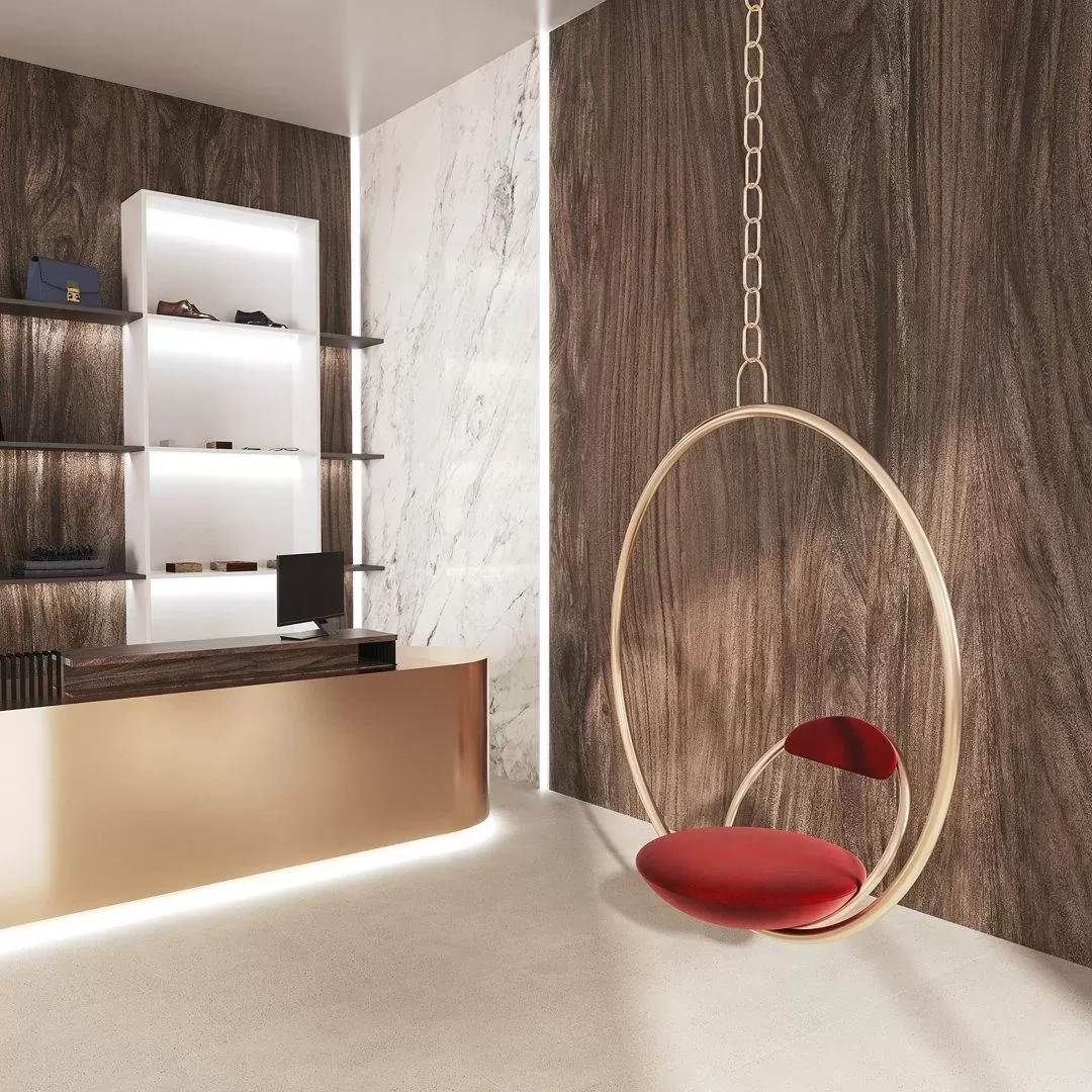 Крупная, ярко выраженная текстура древесины американского ореха, имеющая сложный, хорошо читаемый узор, в тандеме с насыщенным благородным цветом пользуется неизменным спросом в отделке изысканных интерьеров. Современные технологии позволили перенести на прочный и износостойкий керамический гранит эстетику этого природного материала, значительно расширив возможности его применения в архитектуре и дизайне.