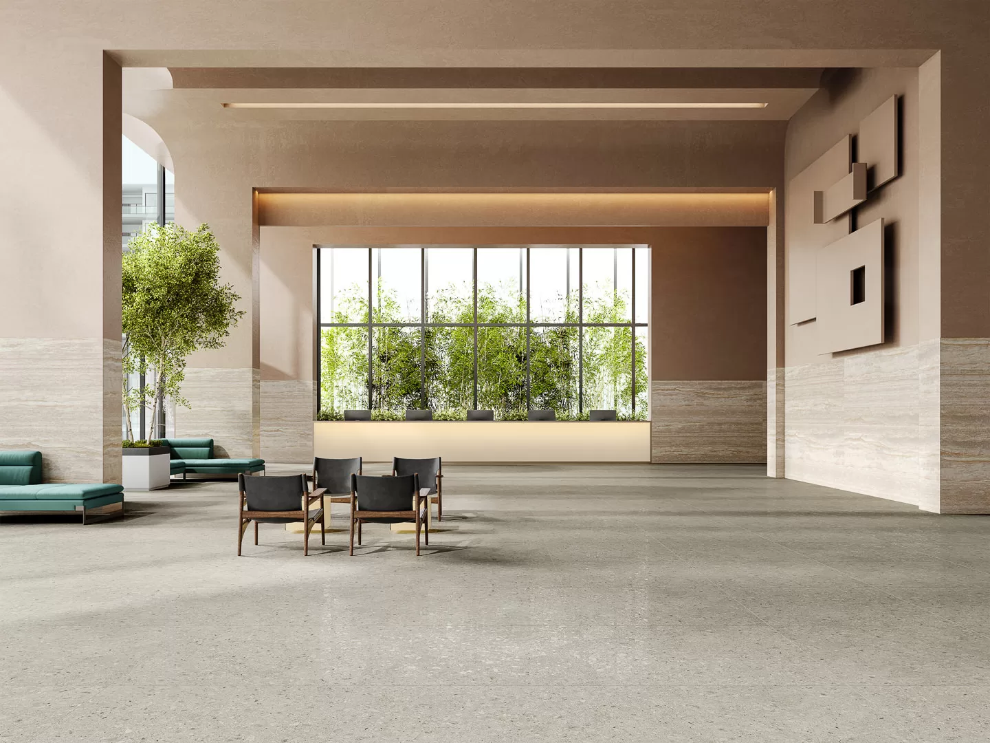 В Северной Италии такой камень используется в отделке интерьеров уже не одно столетие. Всё дело в том, что редкий минерал добывают исключительно в итальянском регионе Ломбардия. От традиционного венецианского терраццо керамогранит, воспроизводящий графику камня Чеппо ди Гре, отличают более сложная структура, неравномерный и не повторяющийся рисунок, а также отсутствие контрастных акцентов.