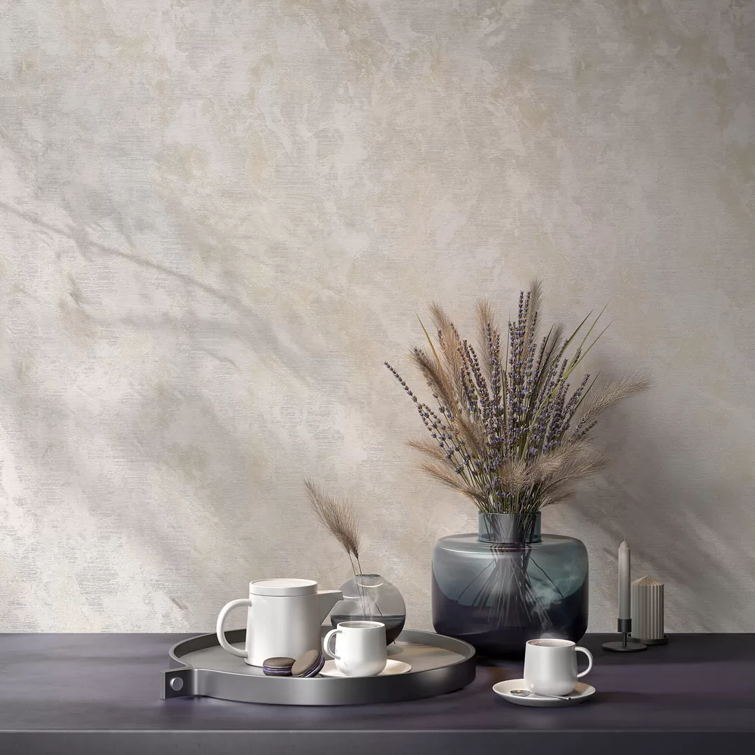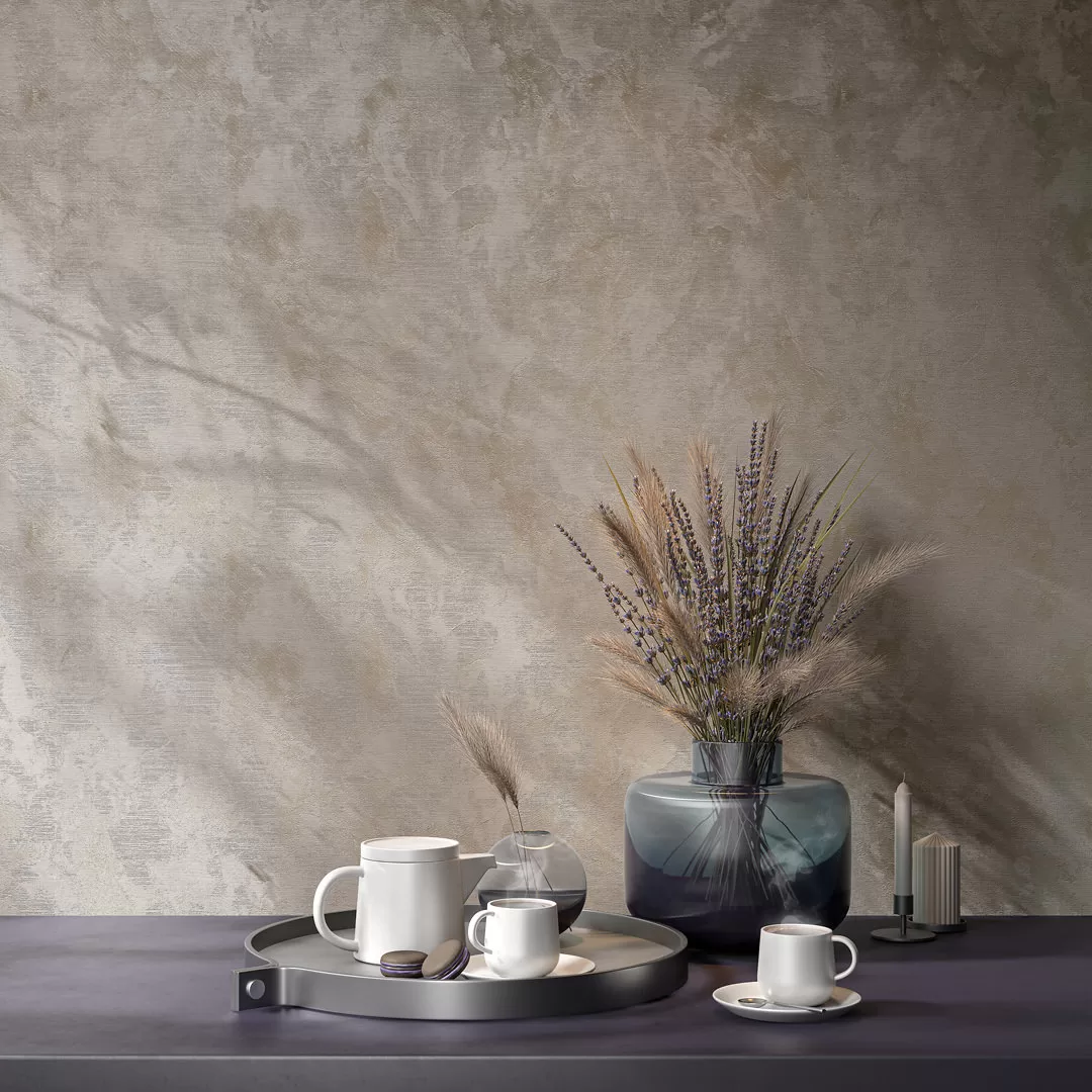 Фоновые обои представлены в линейке с тем же фоновым тиснением. Матовая поверхность мотива и фона смотрится очень естественно.