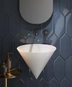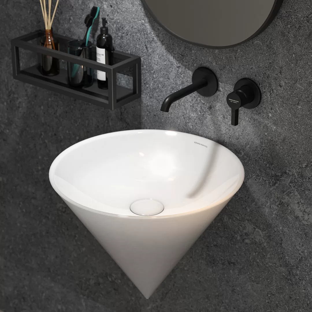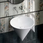 Новый герой в интерьере ванной комнаты — раковина совершенной конусовидной формы с элегантной полусферической чашей. Такой дизайн — гармоничный союз фантазии и техники: скрытый сифон создает иллюзию «невидимого» слива воды.