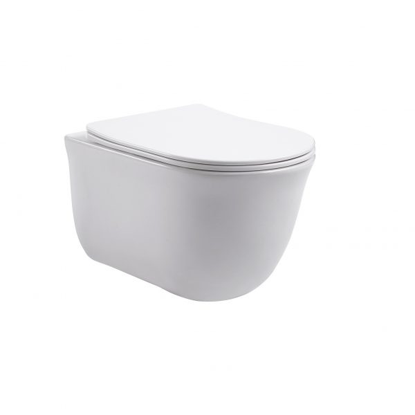 Акватек — Унитаз подвесной безободковый AQUATEK ГЕЛИОС AQ1993T-00 505*360*370 мм, смыв ТОРНАДО, горизонтальный выпуск, тонкое сиденье с механизмом плавного закрывания, крепеж