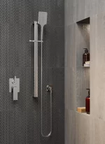 Строгие линии смесителей отлично впишутся в современный интерьер. Латунный корпус с двойным покрытием, выполненным по технологии последнего поколения, устойчив к ржавчине, а также другим химическим и механическим повреждениям. Конструкция смесителей для раковины и душа не уступает их первоклассному дизайну.