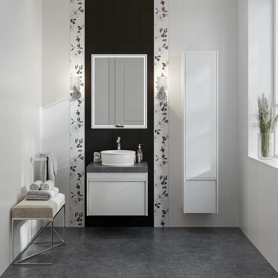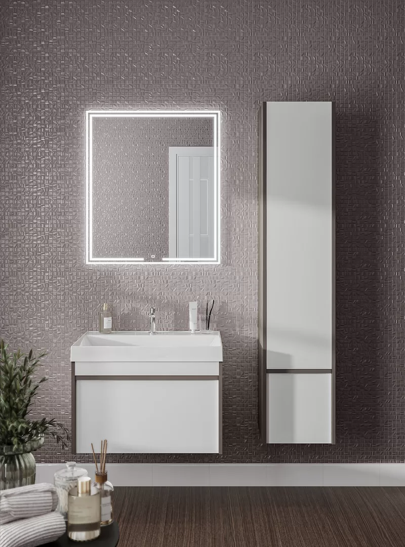 Без зеркала трудно представить себе ванную комнату. Особенно если речь идёт об одном из зеркал MiO, выполненных с деликатной LED-подсветкой по периметру. Светодиодная подсветка включается одним прикосновением к сенсору в нижней части зеркального полотна. Квадратные, прямоугольные и круглые зеркала шириной от 60 до 120 см — отличный выбор для взыскательного покупателя.