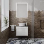 Выбирайте размер, форму и цвет раковины, размер тумбы MODULA и рисунок столешницы из керамического гранита для создания одного из сотен возможных решений!