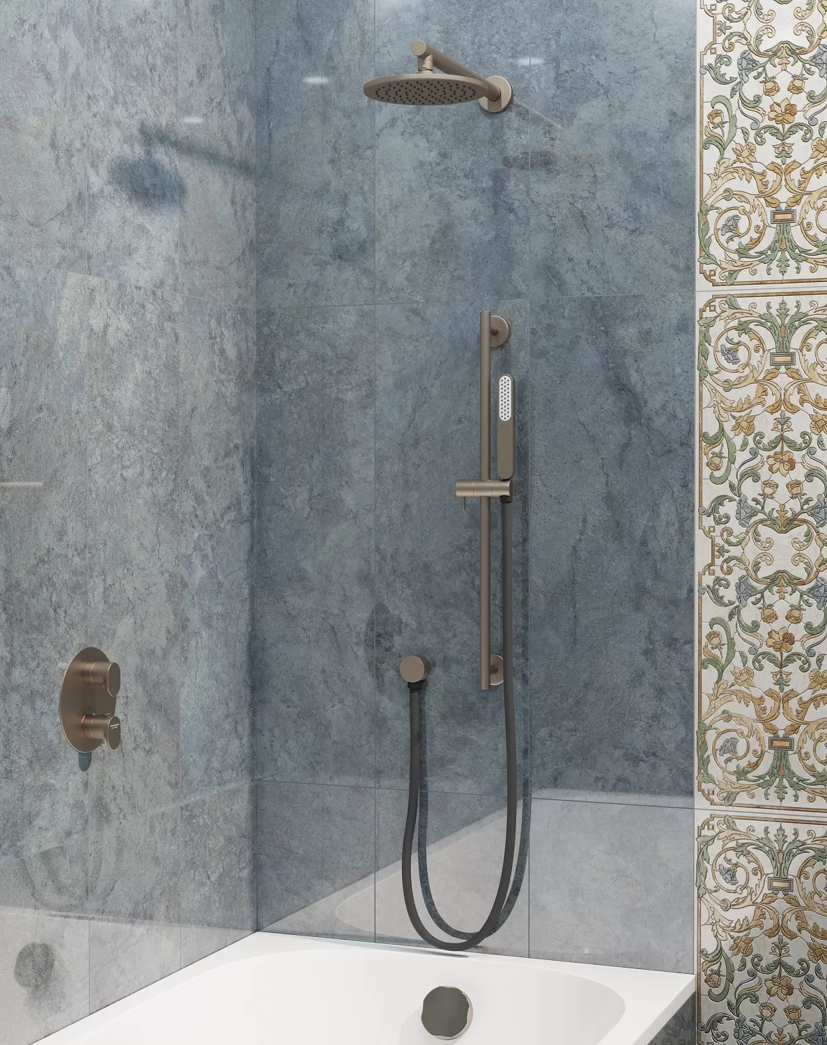 Душевая стойка OLE c ручной круглой лейкой и шлангом, без выхода для подачи воды, хром