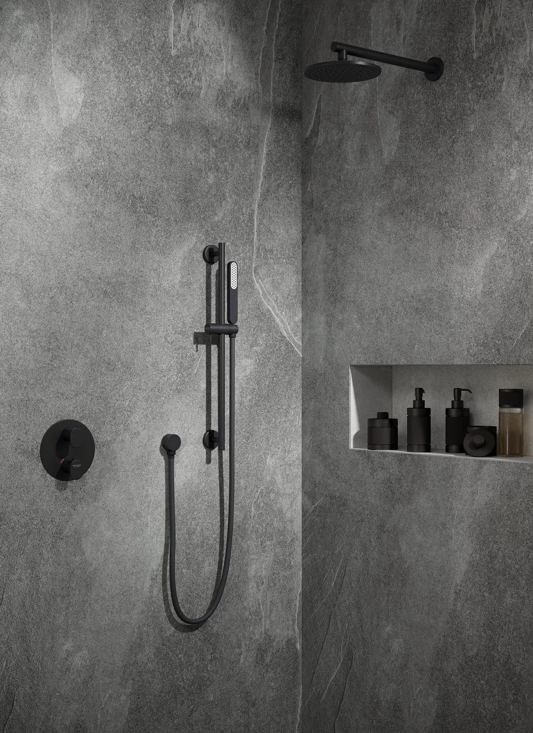 Душевая стойка OLE c ручной круглой лейкой и шлангом, без выхода для подачи воды, матовый черный