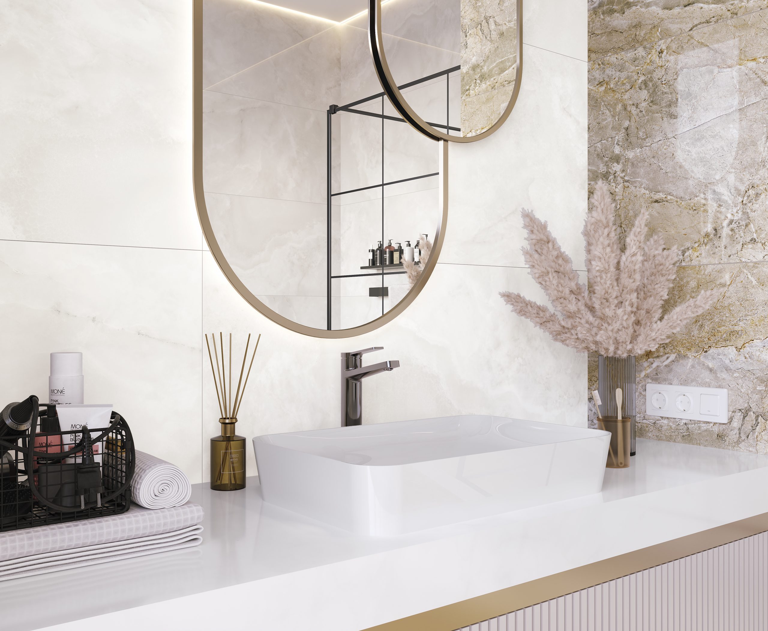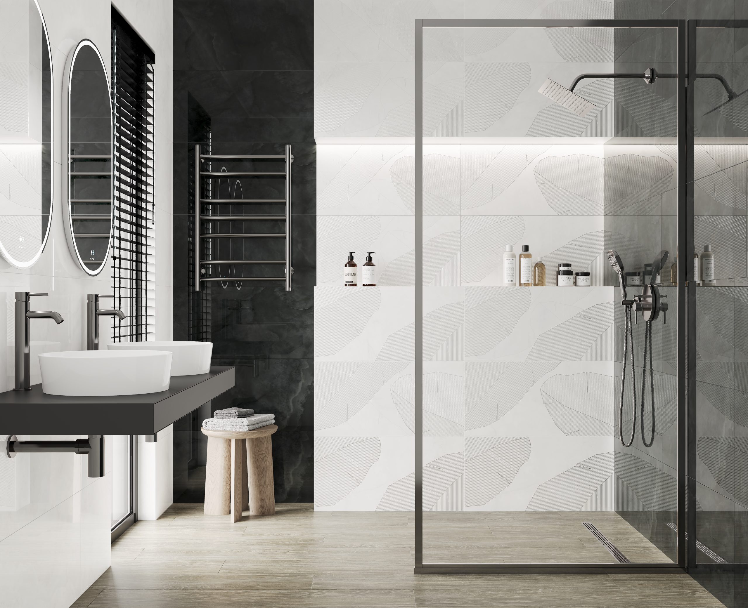 Описание «Артдеко» — коллекция, отражающая современные тенденции в дизайне. В центре внимания ставшее классическим сочетание легкого мрамора статуарио и насыщенного