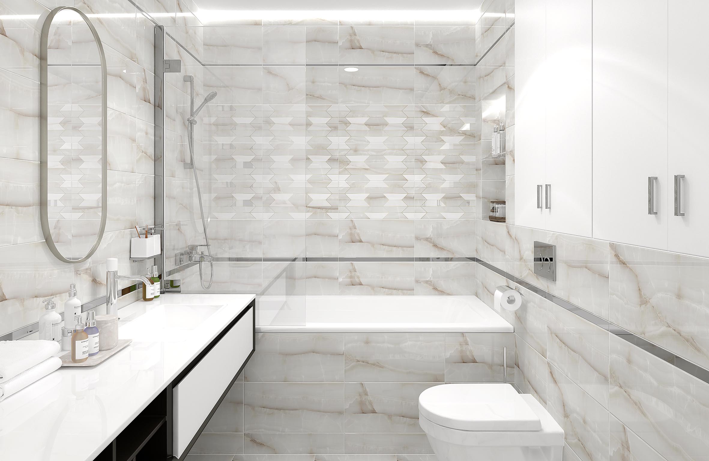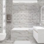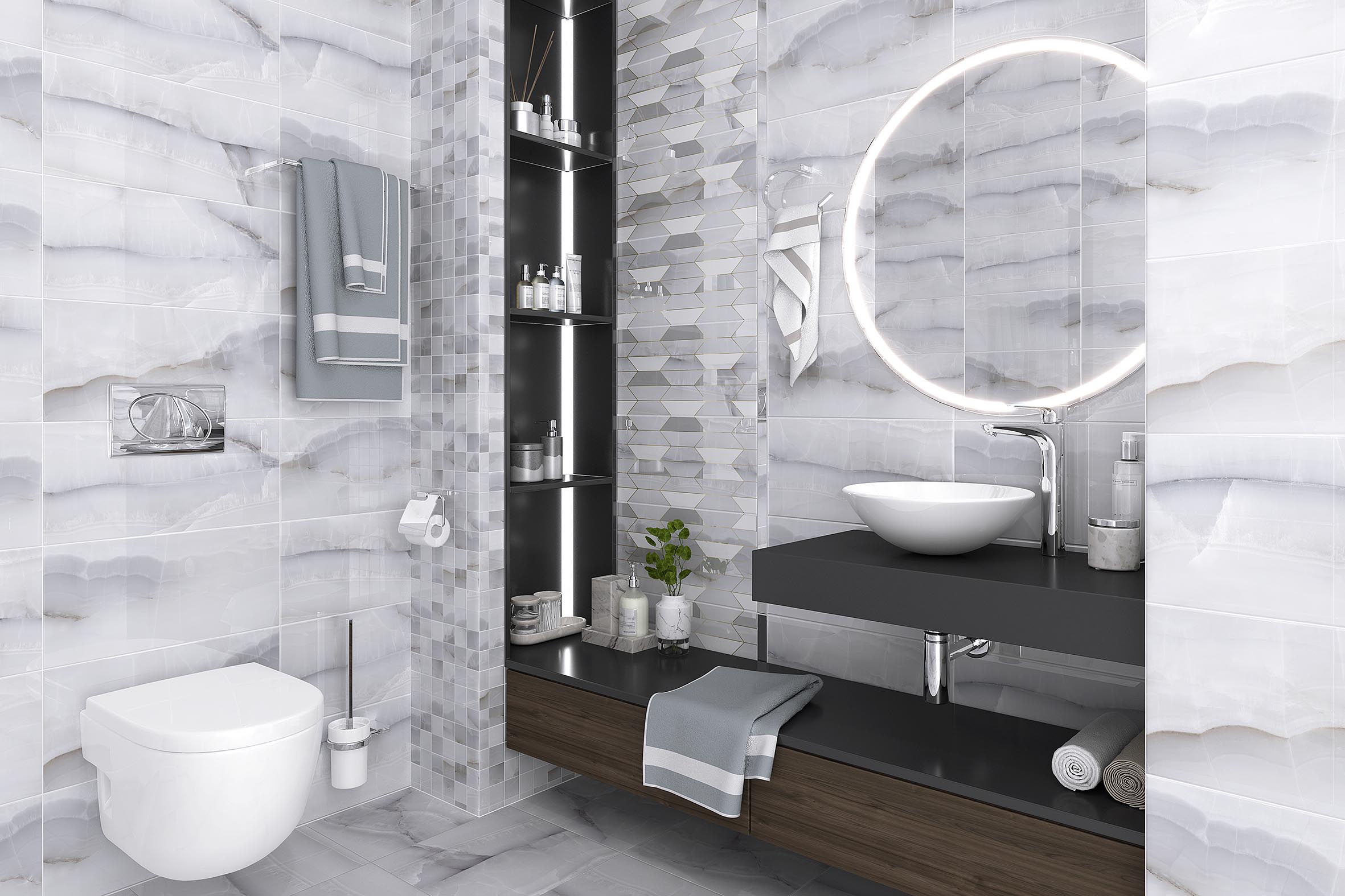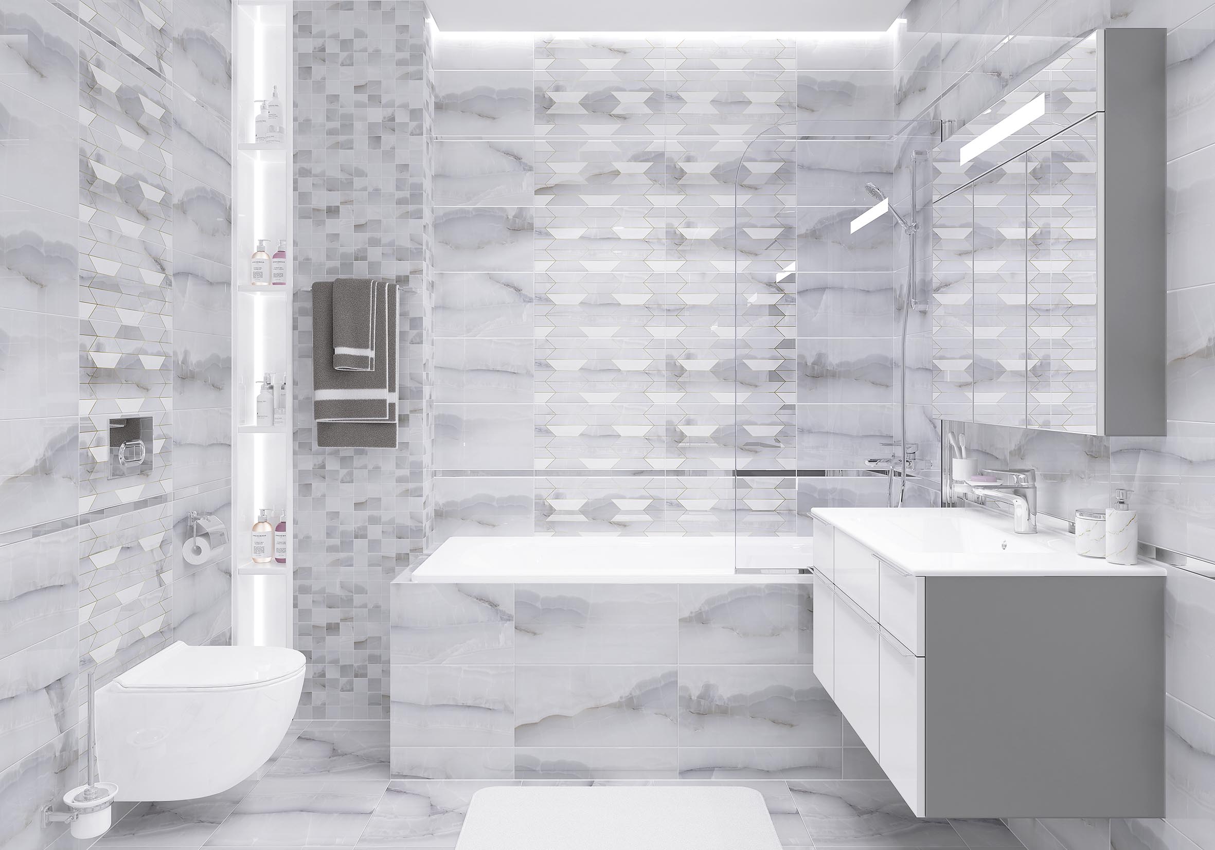 Описание В коллекцию Albion входит глянцевая плитка 249×500 мм с классическим бело-серым мрамором calacatta и лазурно-голубым камнем pulpis blue. Его