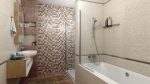 В комплект к базовой плитке идут два нарядных варианта. Модуль с пэчворком украшен геометрическими и растительными узорами, а также текстурами мрамора разных оттенков. Он представлен в коричневой расцветке. Настенная плитка бежевого цвета покрыта нежным растительным узором с витиеватыми веточками. В зависимости от выбора плитки получаются разные по настроению интерьеры. Пэчворк игривый, разнообразный. Растительный узор выполнен в классическом стиле, нежный и утончённый.