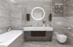 Описание «Атлантик» — это волны океана, застывшие в камне. Глянцевая текстура плитки в холодных стальных и дымчато-голубых цветах идеально передает