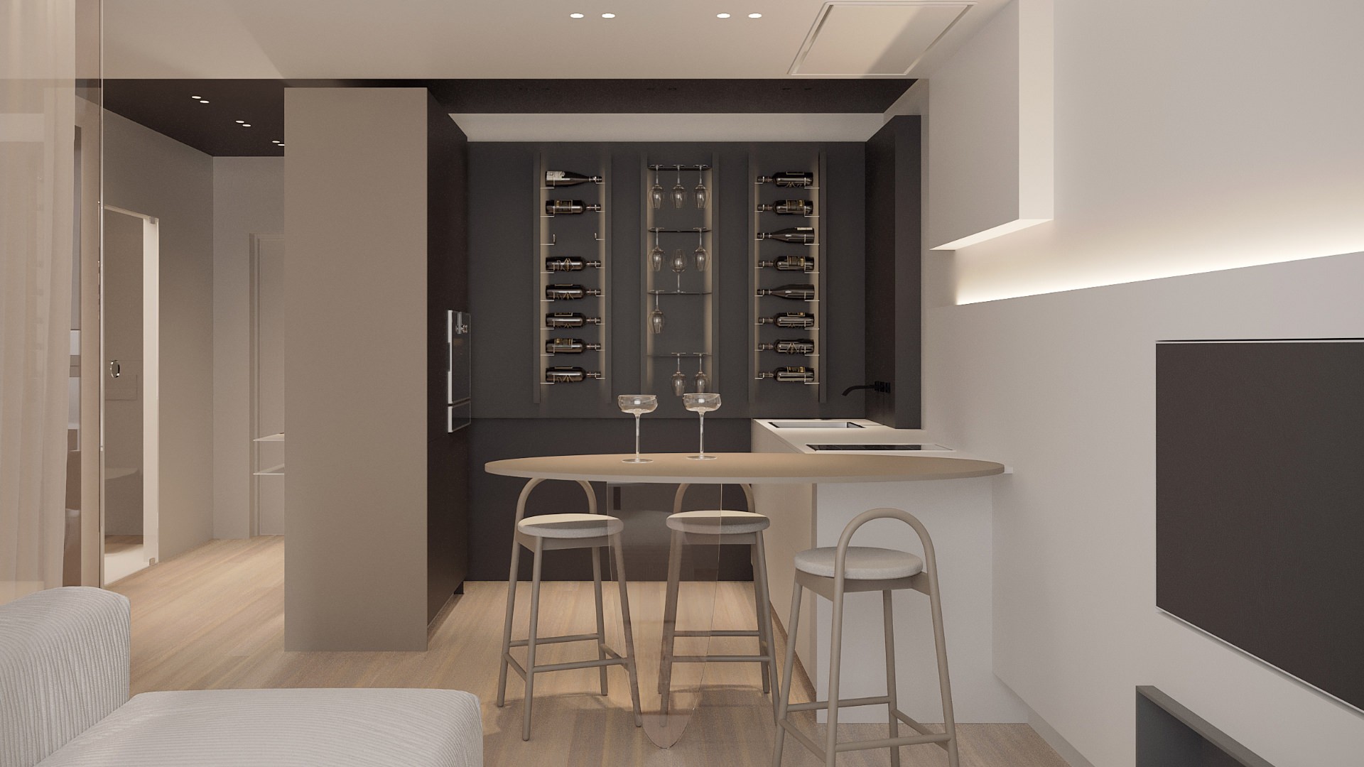 Кухня Крафт — это ультрасовременный стиль и качественные материалы. Фасады из МДФ, покрытые термопластиком, прослужат долгие годы. Вместительные колонки 1,2 м и сама кухня 2,1 м позволят удобно разместить всё необходимое. А специальная зона для хранения бутылок добавит кухне функциональности. Приглашаем вас в салон за просчётом проекта.