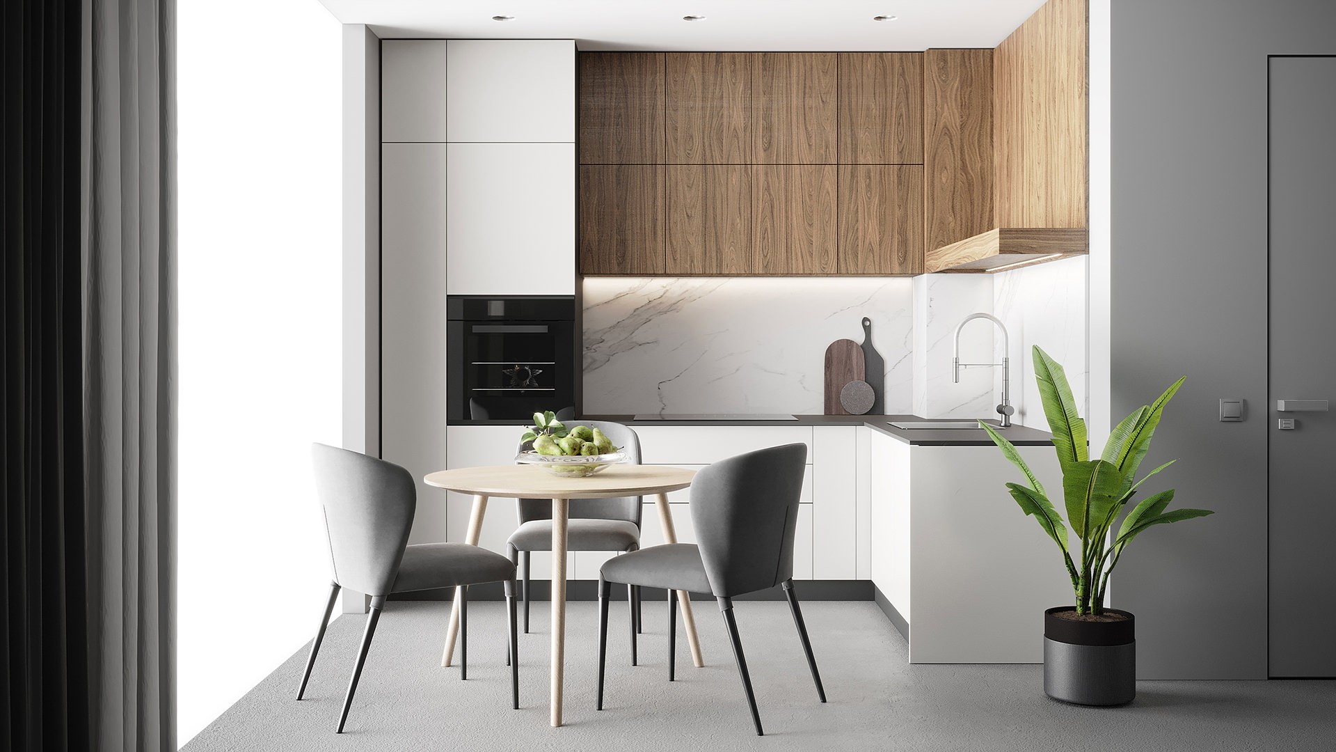 Характеристики кухни Размер (В*Ш*Г), мм2140*1100*600 Цвет каркасовДуб Вотан Материал каркасовЛДСП Цвет фасадовGrey Silk/Stormy Silk Материал фасадовМДФ Отделка фасадовПЭТ Полезная информацияВнимание!