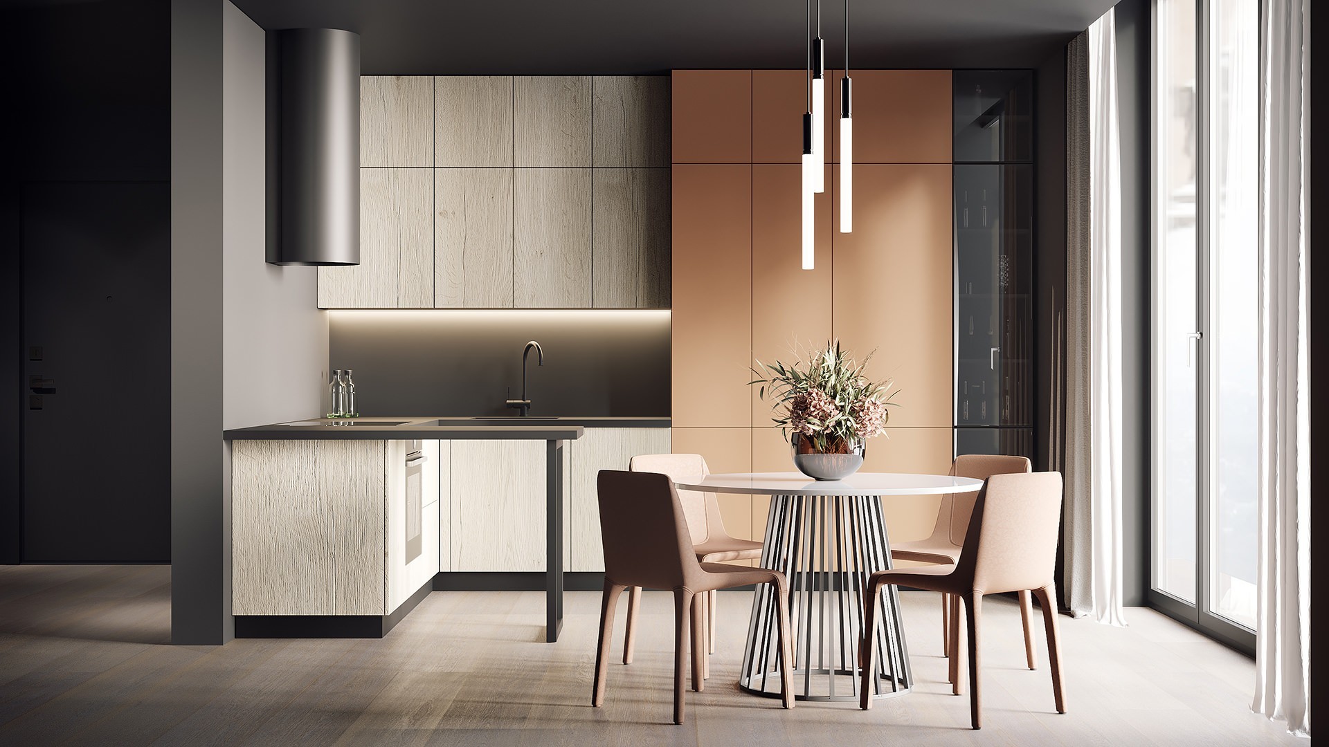 Характеристики кухни Размер (В*Ш*Г), мм2140*1100*600 Цвет каркасовДуб Вотан Материал каркасовЛДСП Цвет фасадовSilky White/Silky Light Grey Материал фасадовМДФ Отделка фасадовПЭТ Толщина