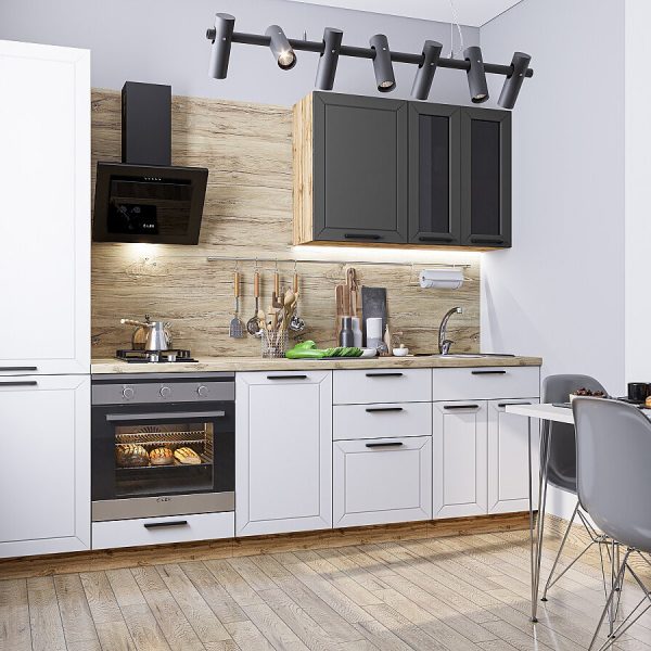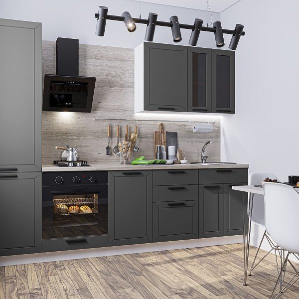 Характеристики кухни Размер (В*Ш*Г), мм2140*800*600 Цвет каркасовGraphite Материал каркасовЛДСП Цвет фасадовАйленд Силк/Гейнсборо Силк Материал фасадовМДФ Отделка фасадовПленка ПВХ «Soft Touch».