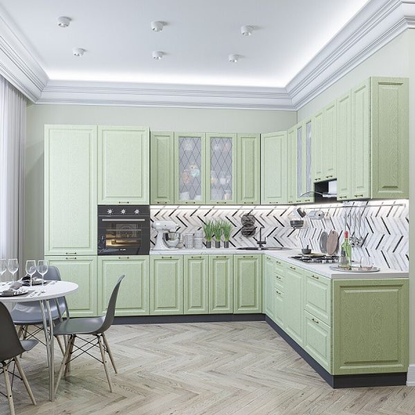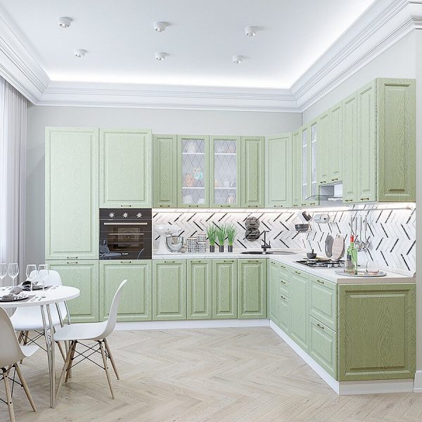 Характеристики кухни Размер (В*Ш*Г), мм2340*3200/2700*600 Цвет каркасовБелый Материал каркасовЛДСП Цвет фасадовДуб оливковый Материал фасадовМДФ/Стекло Отделка фасадовПленка ПВХ. Полезная информацияВ комплект