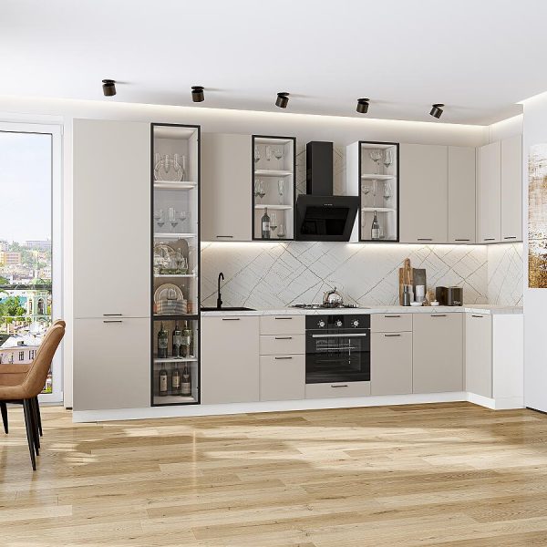 Характеристики кухни Размер (В*Ш*Г), мм2340*4000/1000*600 Цвет каркасовБелый Материал каркасовЛДСП Цвет фасадовCashmere In 2S Материал фасадовЛДСП Толщина кромки, мм1 Полезная информацияВнимание!