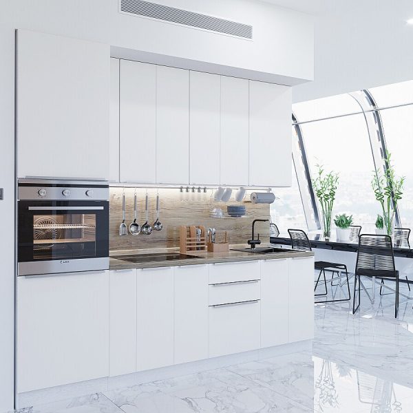 Характеристики кухни Размер (В*Ш*Г), мм2340*2600*600 Цвет каркасовБелый Материал каркасовЛДСП Цвет фасадовSilky White Материал фасадовМДФ Отделка фасадовПЭТ Толщина кромки, мм1 Полезная