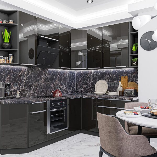 Характеристики кухни Размер (В*Ш*Г), мм2340*2200/1800*600 Цвет каркасовGraphite Материал каркасовЛДСП Цвет фасадовAnthracite Материал фасадовМДФ Отделка фасадовАкрилит Толщина кромки, мм1 Полезная информацияВнимание!