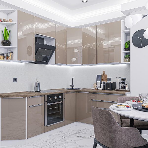 Характеристики кухни Размер (В*Ш*Г), мм2340*2200/1800*600 Цвет каркасовБелый Материал каркасовЛДСП Цвет фасадовGallant Материал фасадовМДФ Отделка фасадовАкрилит Толщина кромки, мм1 Полезная информацияВнимание!