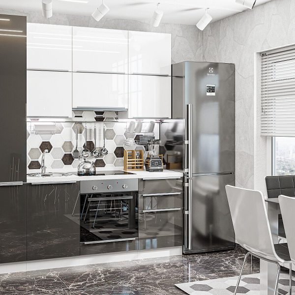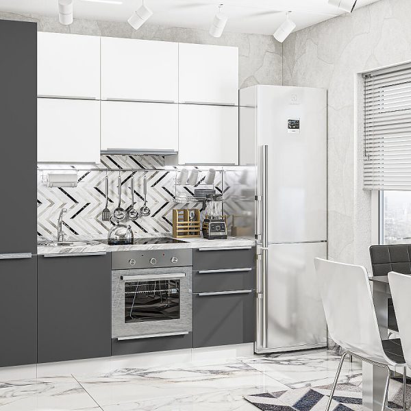 Характеристики кухни Размер (В*Ш*Г), мм2340*2000*600 Цвет каркасовБелый Материал каркасовЛДСП Цвет фасадовAngel/Anthracite Материал фасадовМДФ Отделка фасадовАкрилит Толщина кромки, мм1 Полезная информацияВнимание!